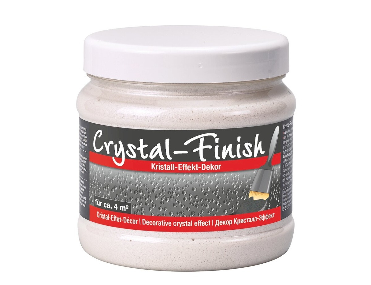 Crystal-Finish je vysoko kvalitný efektný náter na akrylátovej báze s obsahom pravých čiastočiek skla. Vhodné na nátery stien a stropov, tapiet, farebných náterov, muriva, omietok, polystyrénu a takmer všetkých ostatných povrchov v interiéroch.