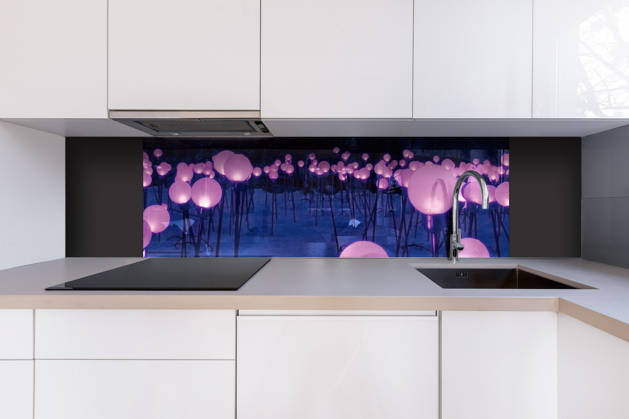 Plexisklo za kuchyňskou linku Fialové zahradní osvětlení - 180 x 60 cm