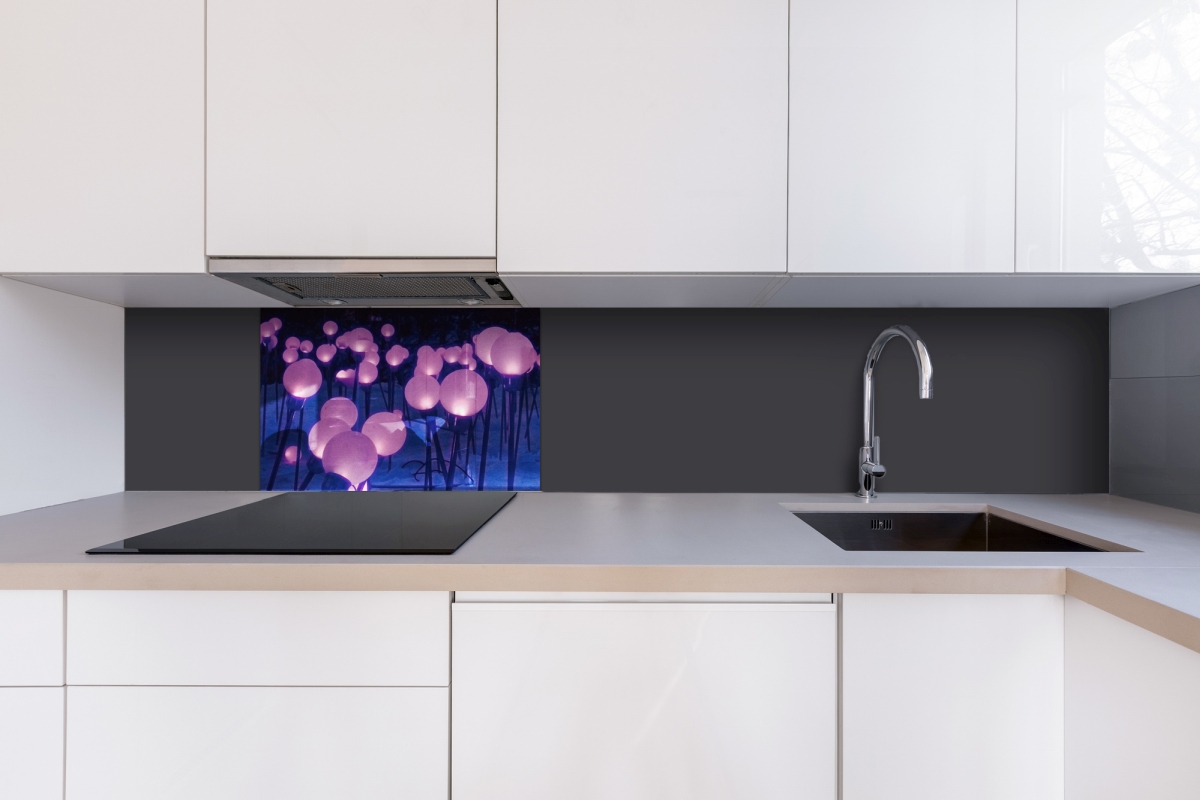 Plexisklo za kuchynskú linku Fialové záhradné osvetlenie - 60 x 40 cm