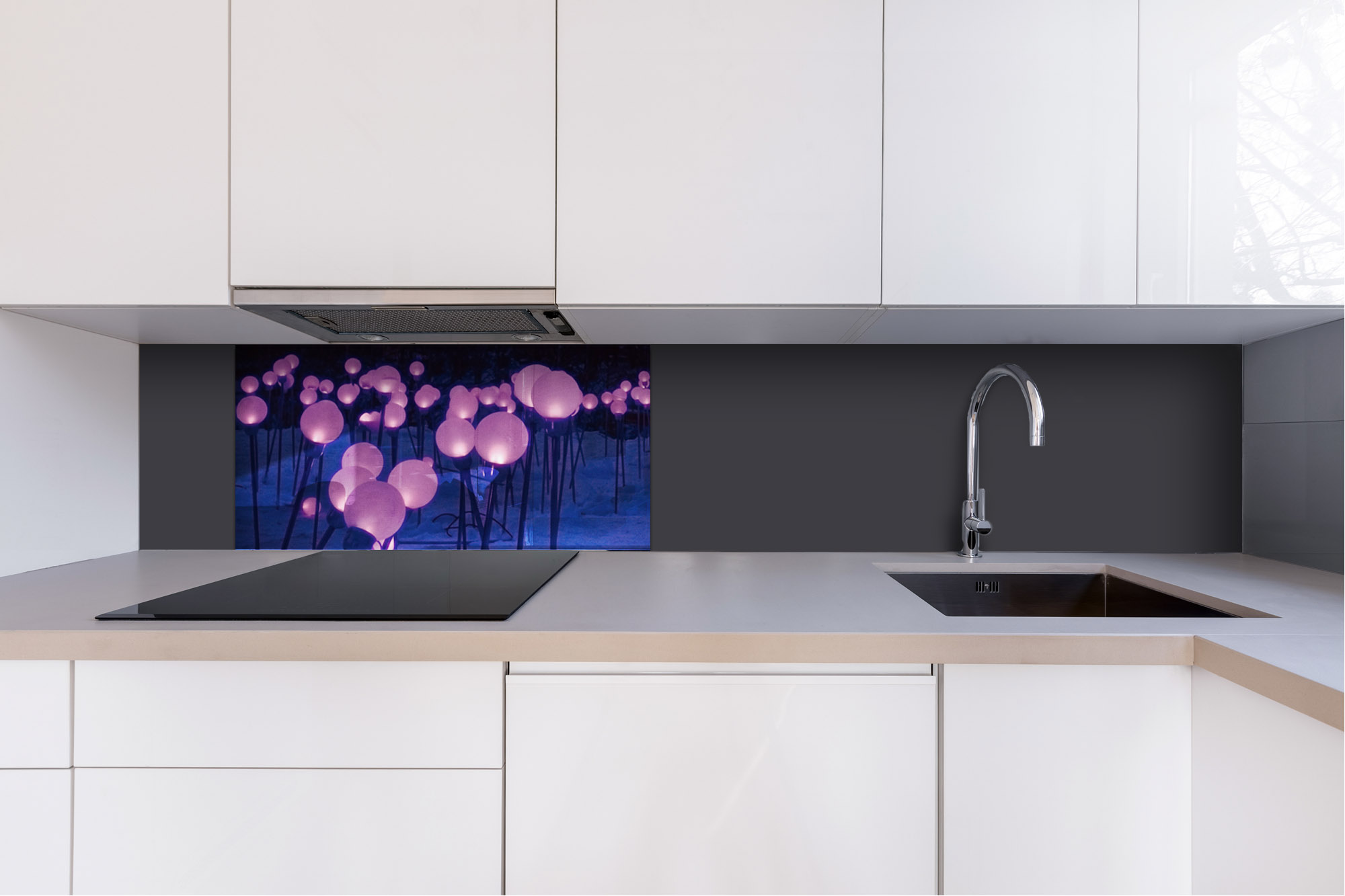 Plexisklo za kuchynskú linku Fialové záhradné osvetlenie - 80 x 40 cm