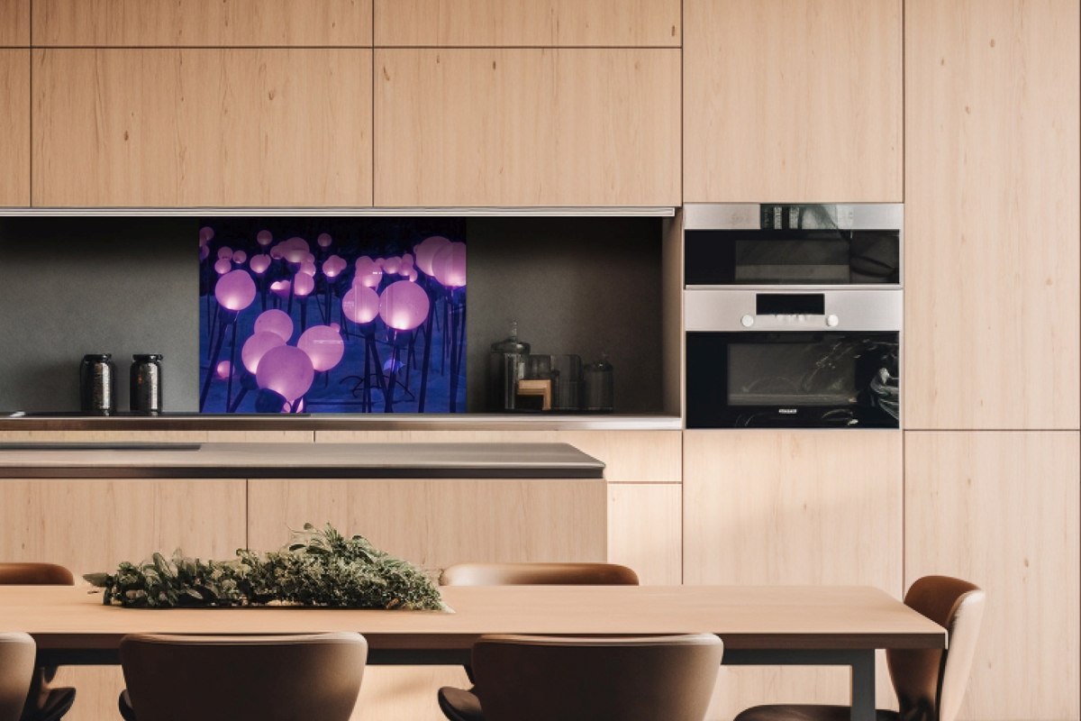 Plexisklo za kuchyňskou linku Fialové zahradní osvětlení - 80 x 60 cm