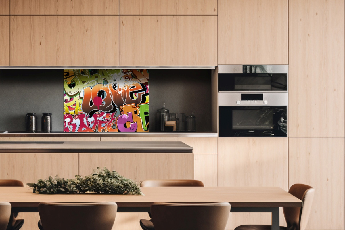 Plexisklo za kuchyňskou linku Graffiti - 80 x 60 cm