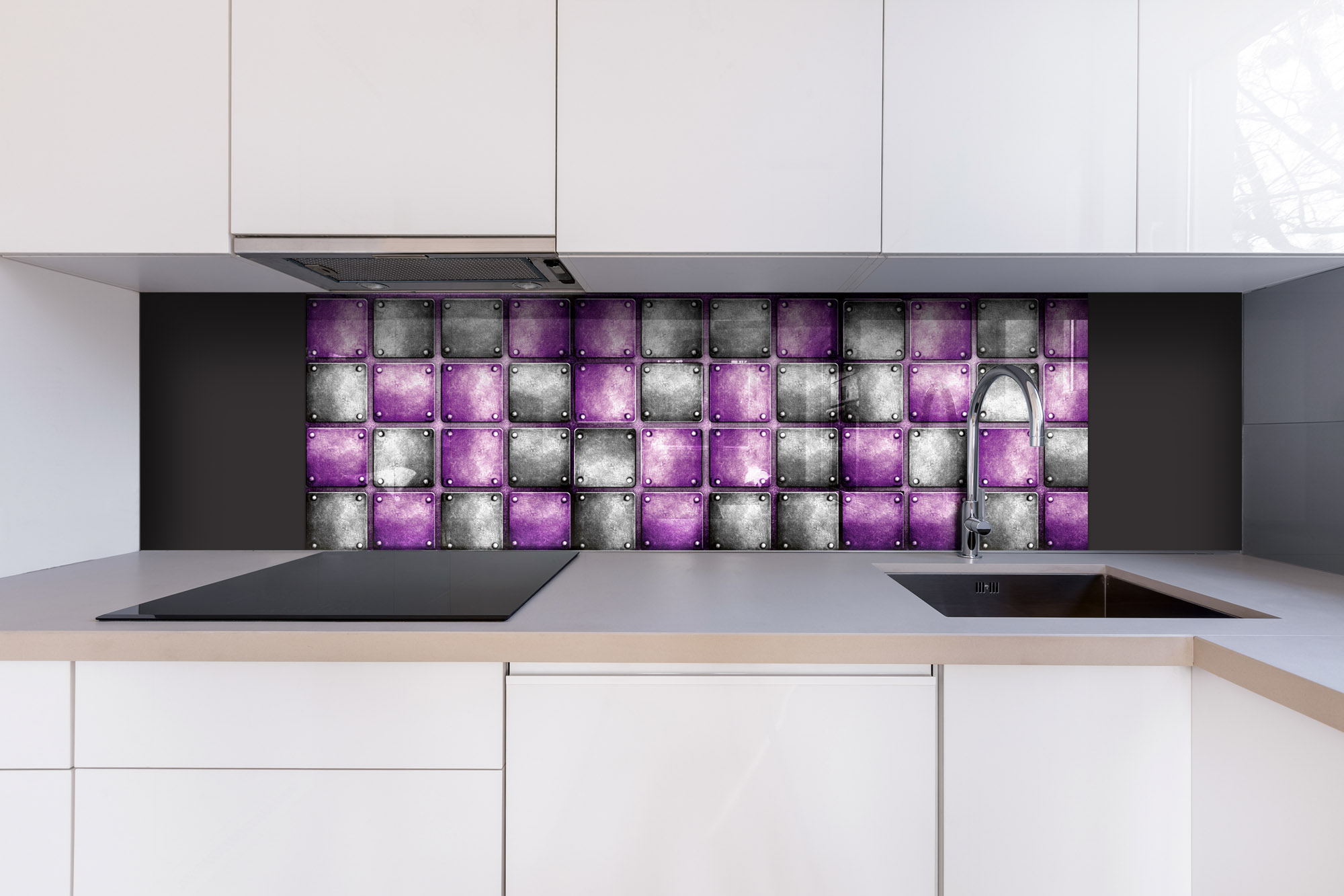 Plexisklo za kuchyňskou linku Kovové kachličky - 180 x 60 cm