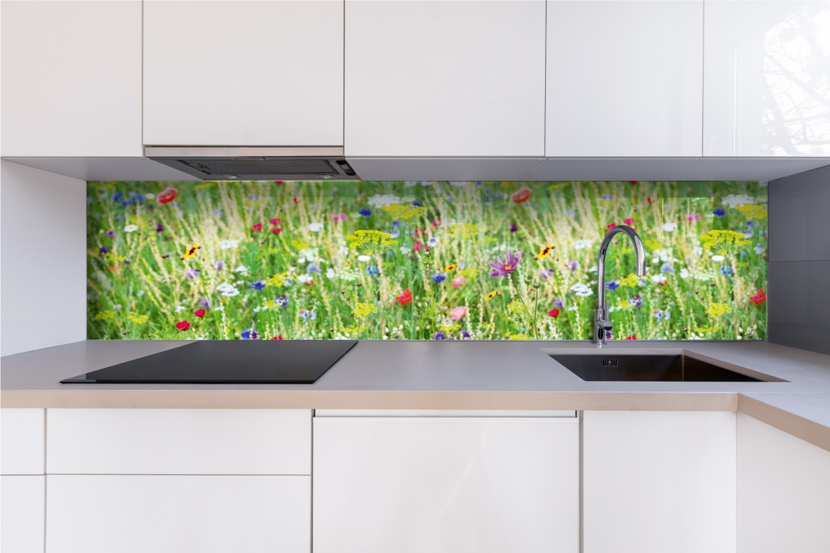 Plexisklo za kuchyňskou linku Květinová louka - 240 x 60 cm