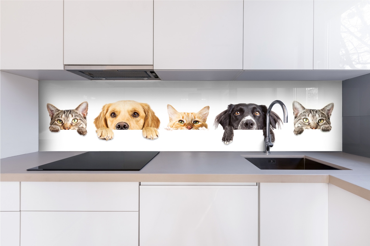 Plexisklo za kuchyňskou linku Kočky a psi - 240 x 60 cm