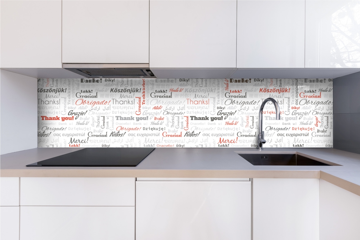 Plexisklo za kuchyňskou linku Nápisy děkuji - 240 x 60 cm