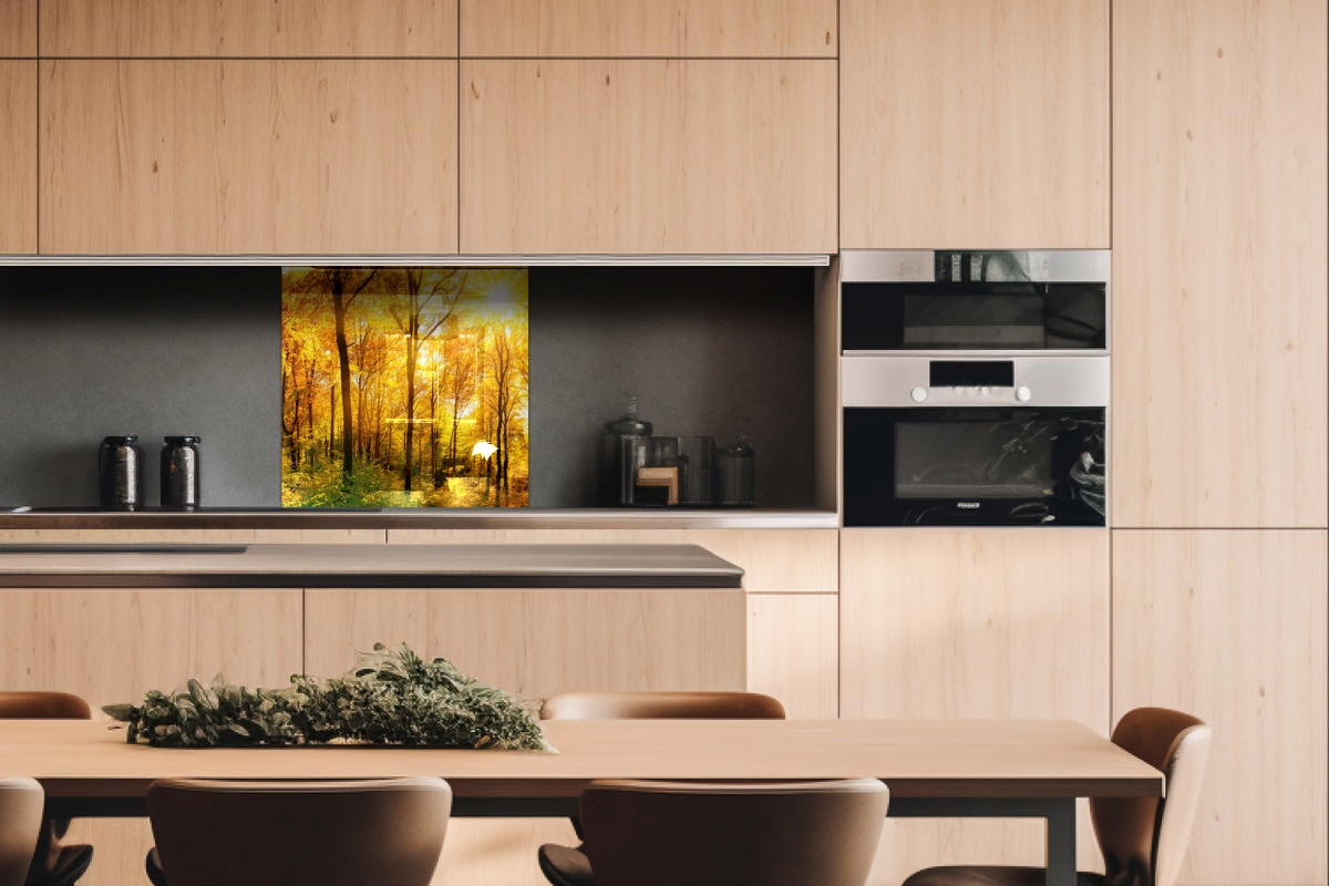 Plexisklo za kuchynskú linku Slnečný les - 60 x 60 cm