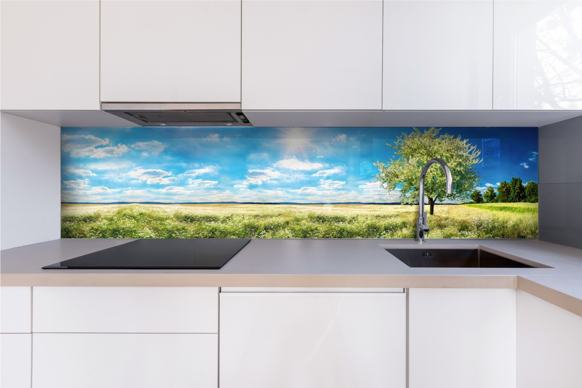 Plexisklo za kuchyňskou linku Strom na louce - 240 x 60 cm