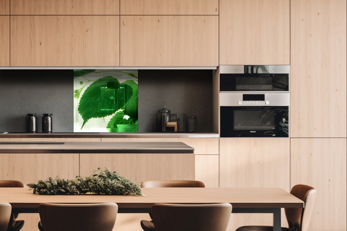 Plexisklo za kuchynskú linku Zelené listy - 60 x 60 cm
