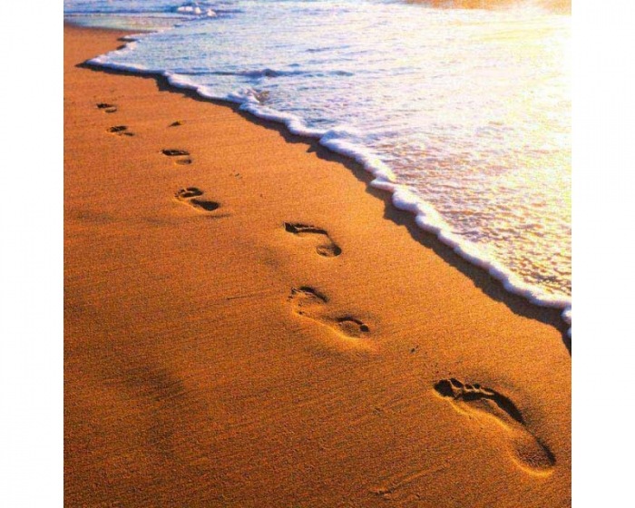 Samolepiaca fototapeta na podlahu Stopy v piesku - 170 x 170 cm