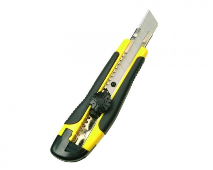 Univerzálny nôž Soft Grip pre domácich majstrov, modelárov, pre tapetovacie a podlahárske práce. Nastaviteľný brit z vysoko kvalitnej tvrdenej ocele, komfortné Soft Grip umelohmotné telo s kovovým vedením, manuálny skrutkový rýchlouzáver TWIST LOCK.