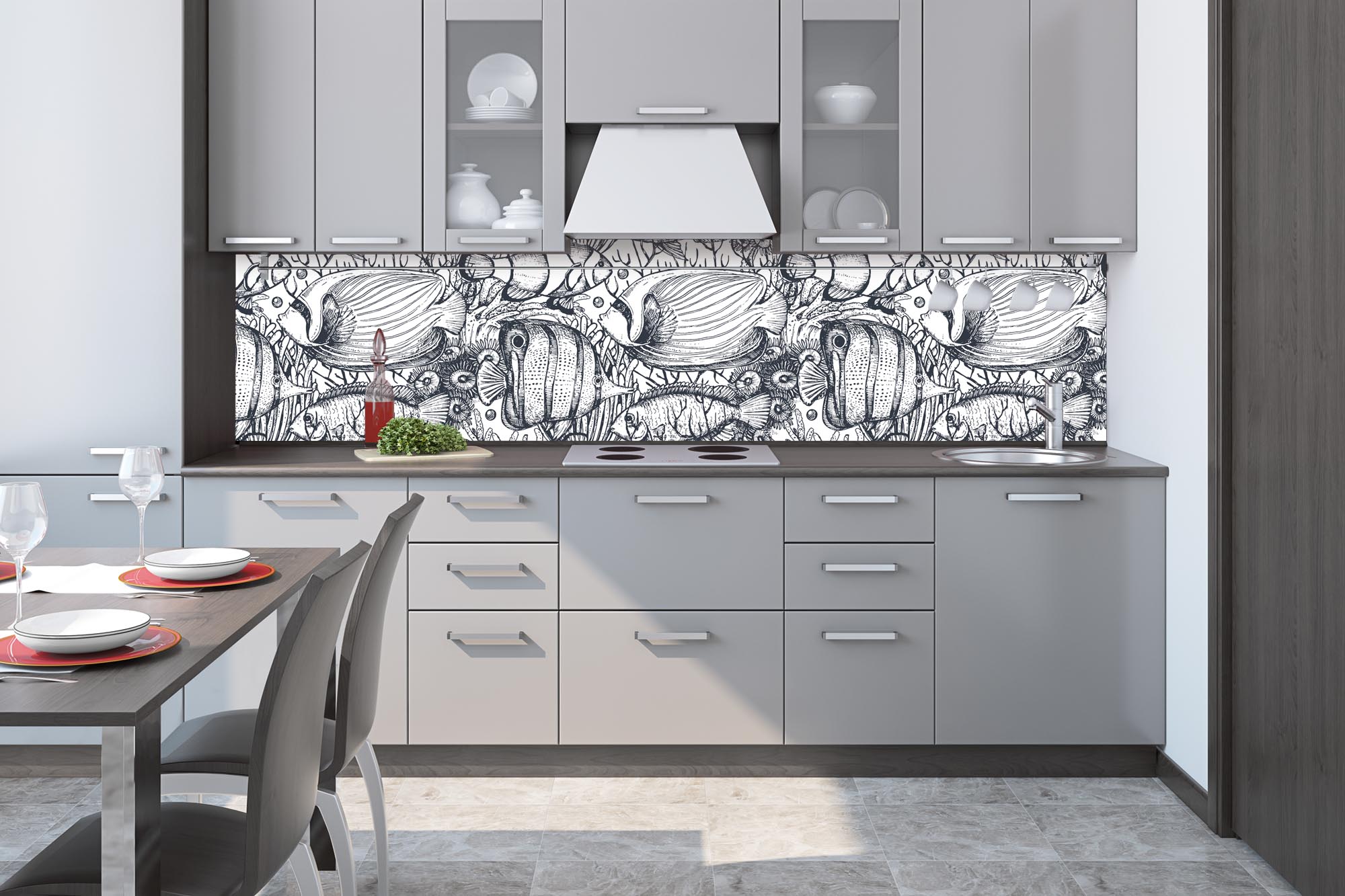 Fototapeta do kuchyne - Čiernobiele ryby 260 x 60 cm