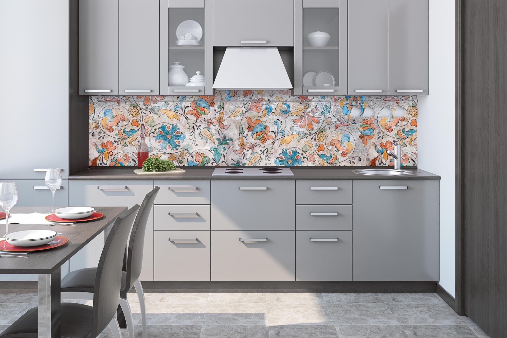 Fototapeta do kuchyne - Kvetinová talianska freska 260 x 60 cm