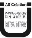 Ťažká zápalnosťŠtátna skúšobňa materiálu NRW overuje, či tapety označené značkou MPA zodpovedajú požiadavkám, ktoré sú stanovené v skúšobných zásadách pre stavebniny triedy B1 podľa DIN 4102, časť 1 na ťažko zápalné stavebniny a sú schválené Nemeckým inštitútom pre stavebnú techniku v Berlíne.