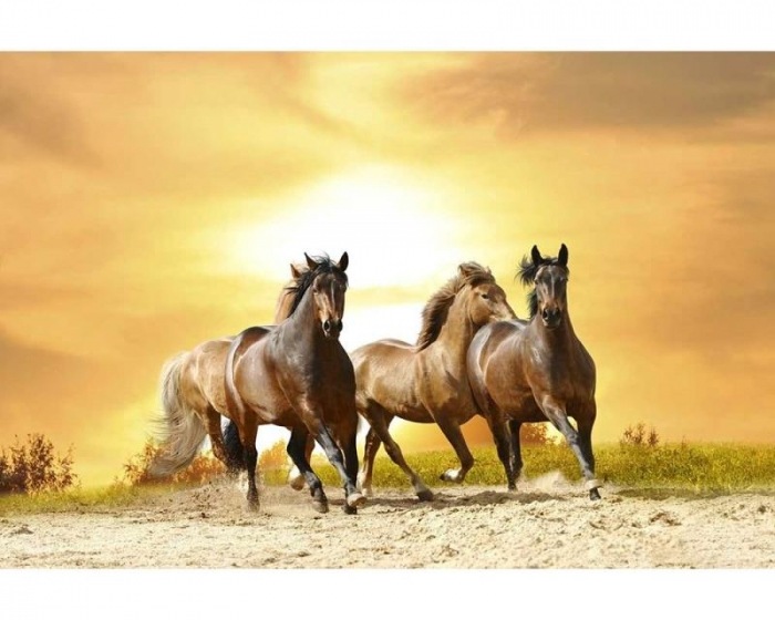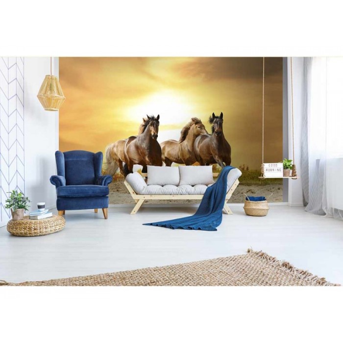 Vliesová fototapeta Kone pri západe slnka 375 x 250 cm