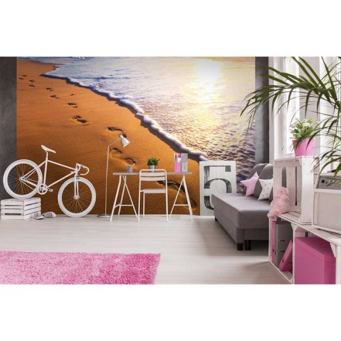 Vliesová fototapeta Stopy na pláži 375 x 250 cm