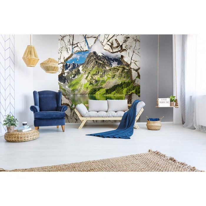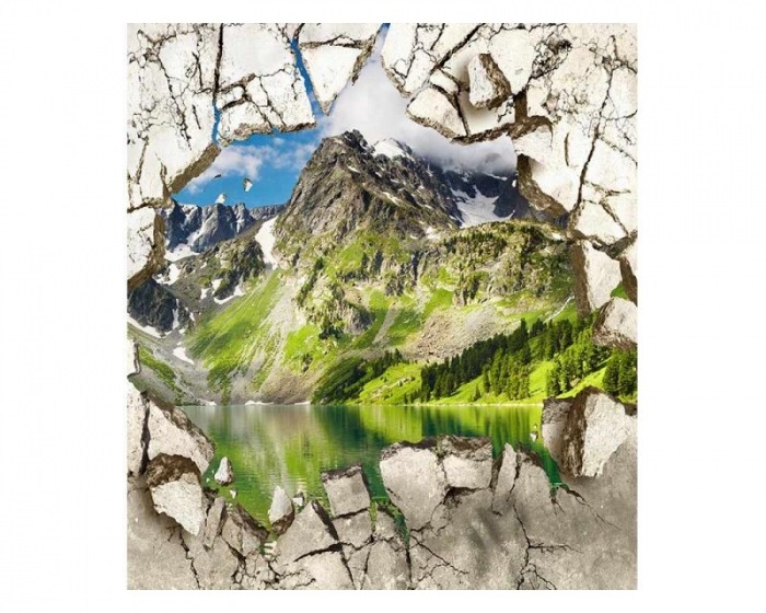 Vliesová fototapeta Rozbitá stena s horou 225 x 250 cm