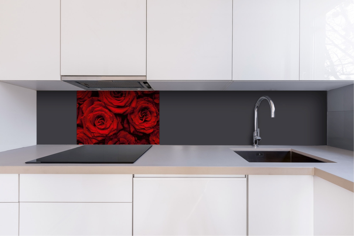 Dibond obkladová deska za kuchyňskou linku Červené ruže - 60 x 40 cm cm