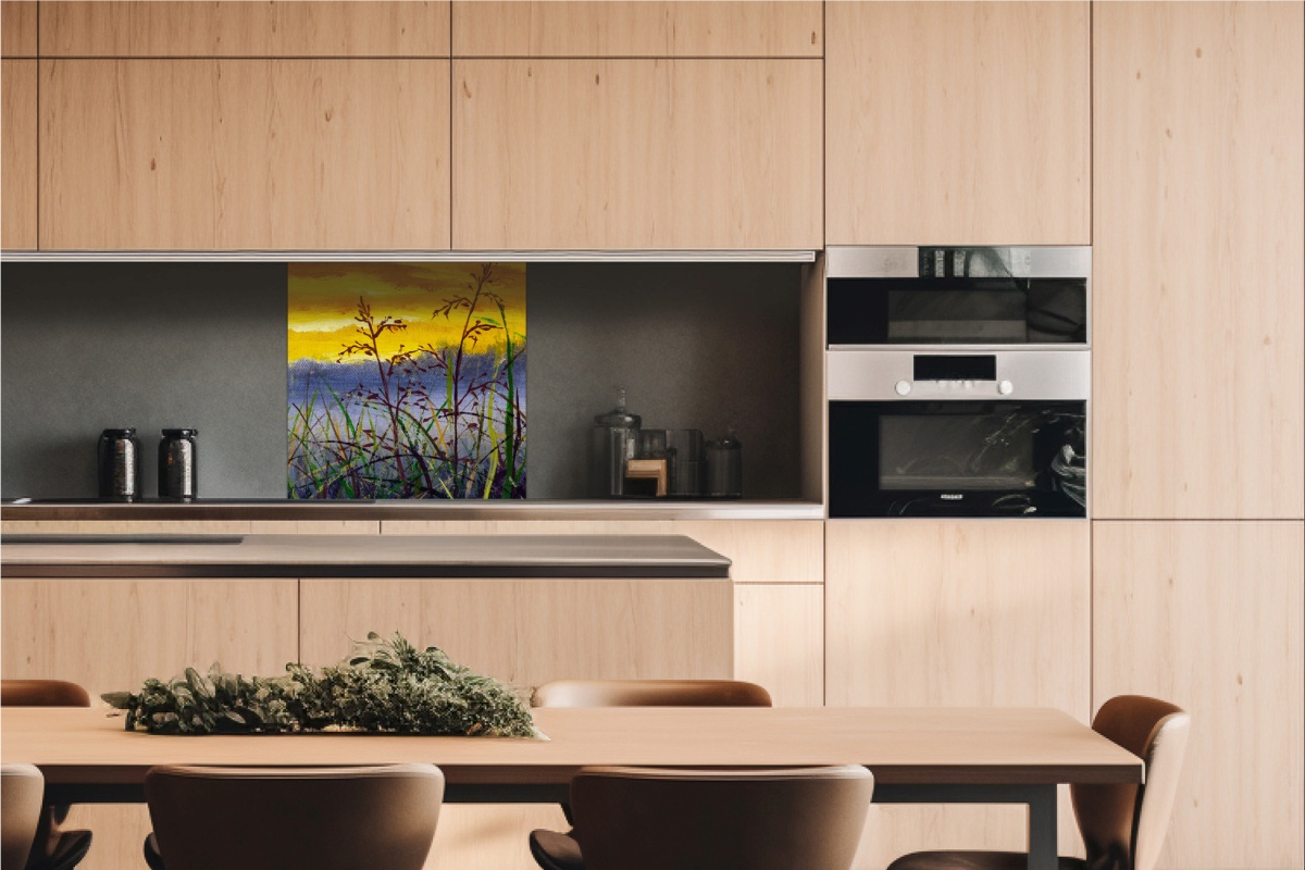 Dibond obkladová deska za kuchyňskou linku Denimová maľba lúčnej trávy - 60 x 60 cm cm