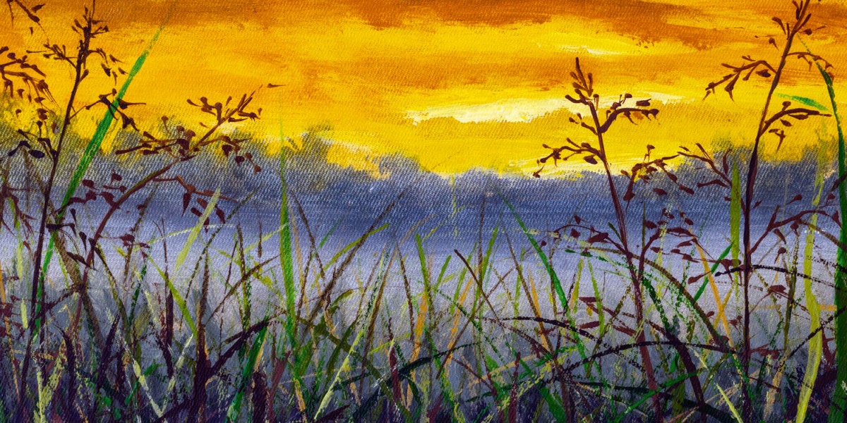 Dibond obkladová doska za kuchynskú linku Denimová maľba lúčnej trávy - 80 x 40 cm