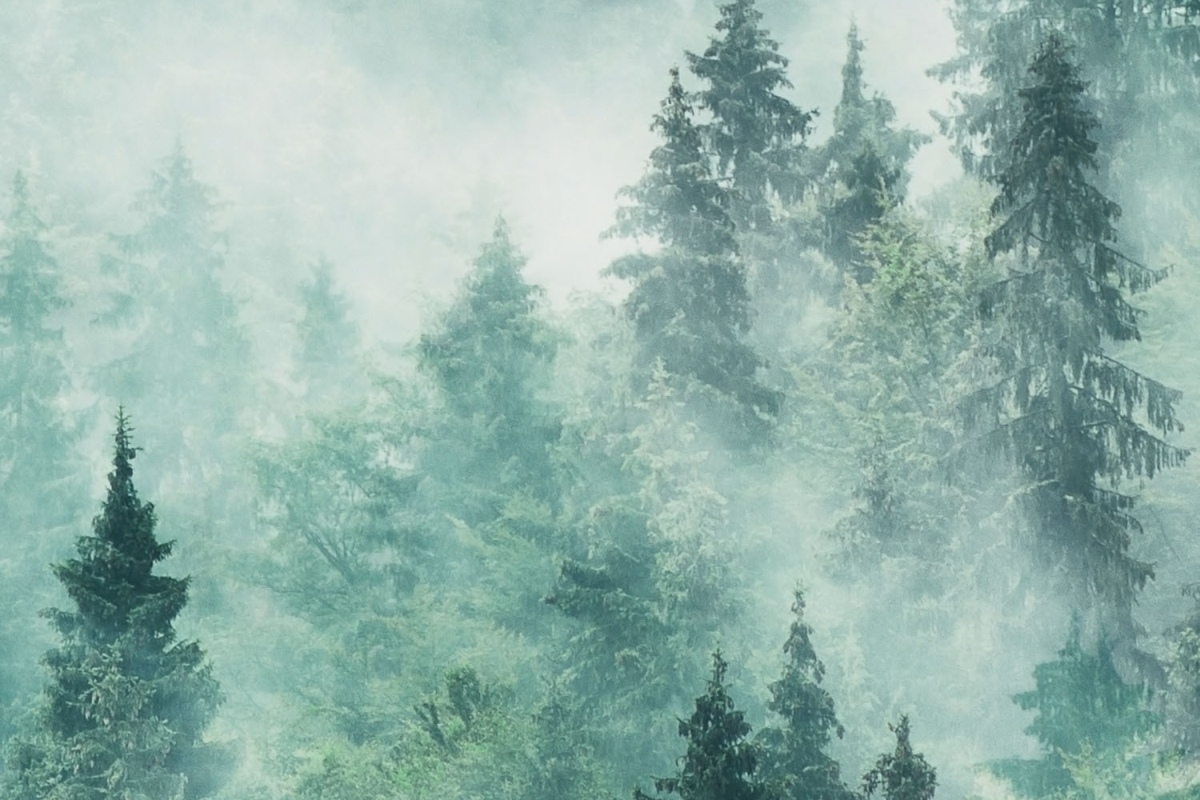 Dibond obkladová deska za kuchyňskou linku Hmla v lese - 60 x 40 cm cm