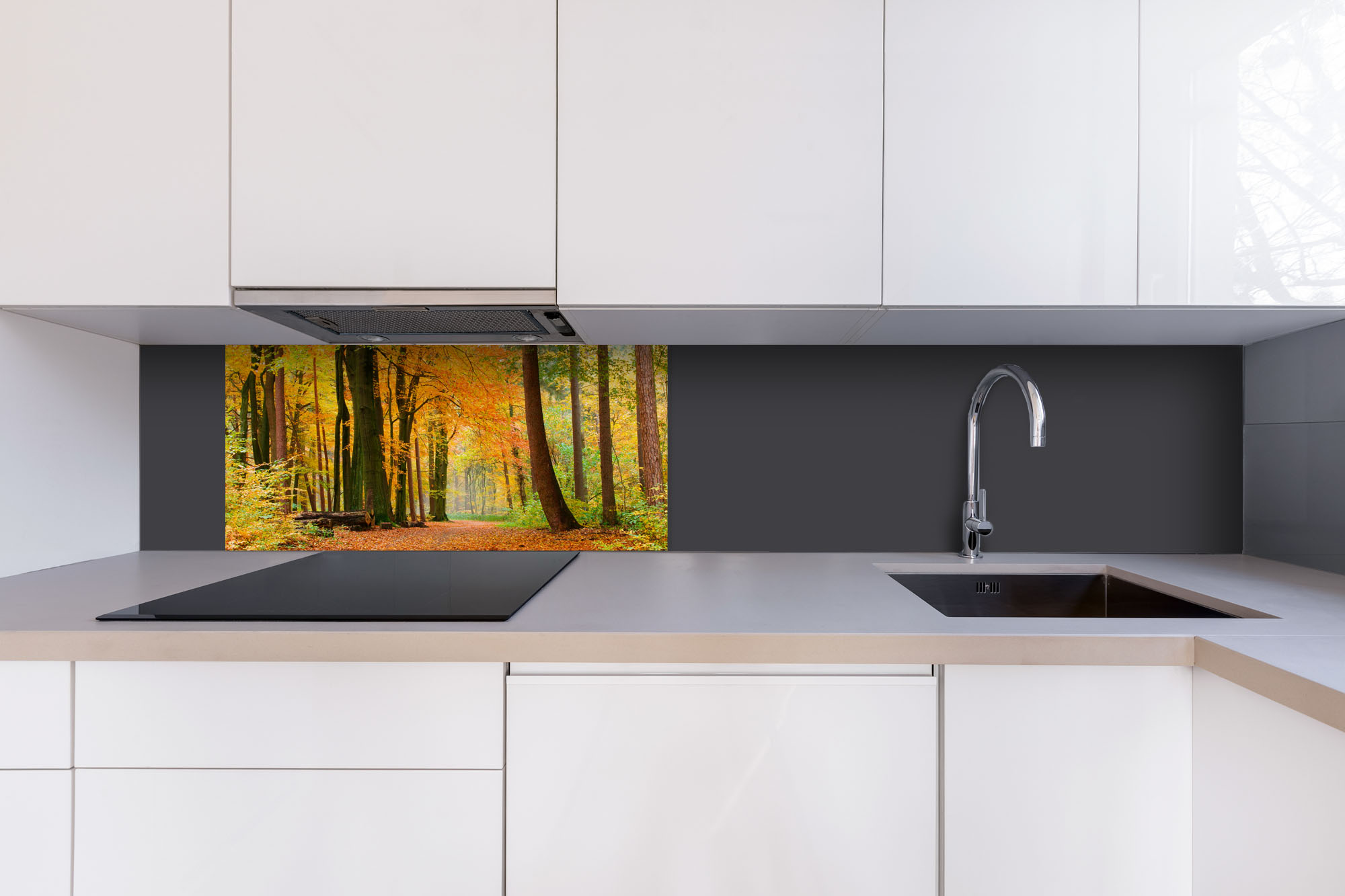 Dibond obkladová doska za kuchynskú linku Jesenný les - 80 x 40 cm