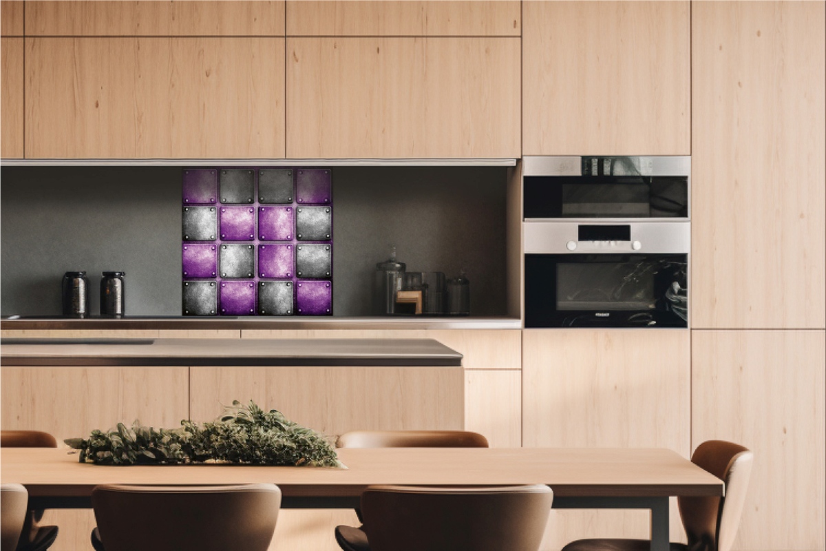 Dibond obkladová deska za kuchyňskou linku Kovové kachličky - 60 x 60 cm cm