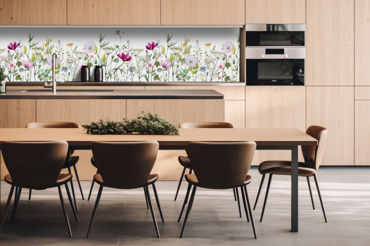 Dibond obkladová doska za kuchynskú linku Kvetinový vzor - 260 x 60 cm
