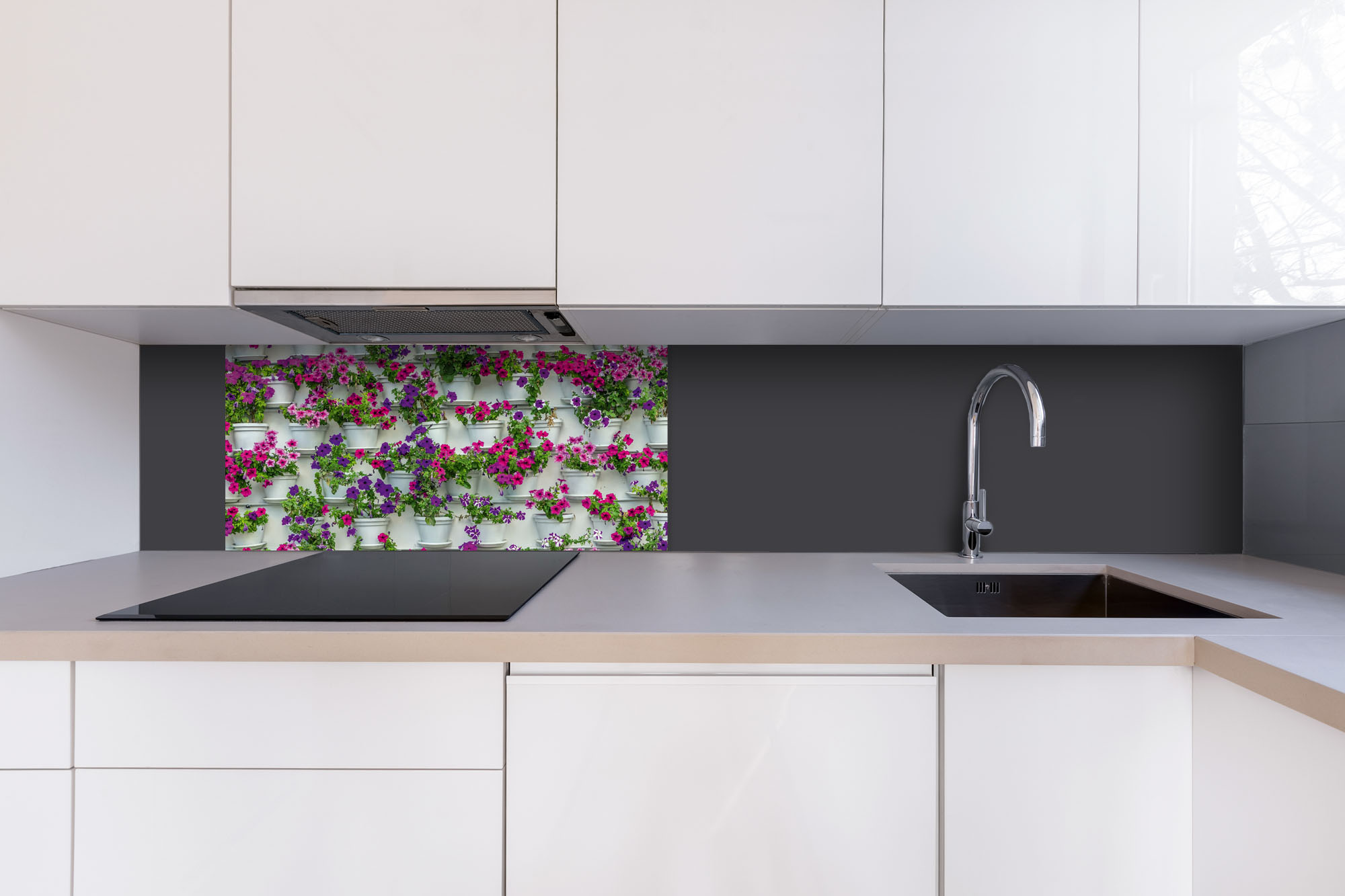 Dibond obkladová doska za kuchynskú linku Kvety v kvetináčoch - 80 x 40 cm