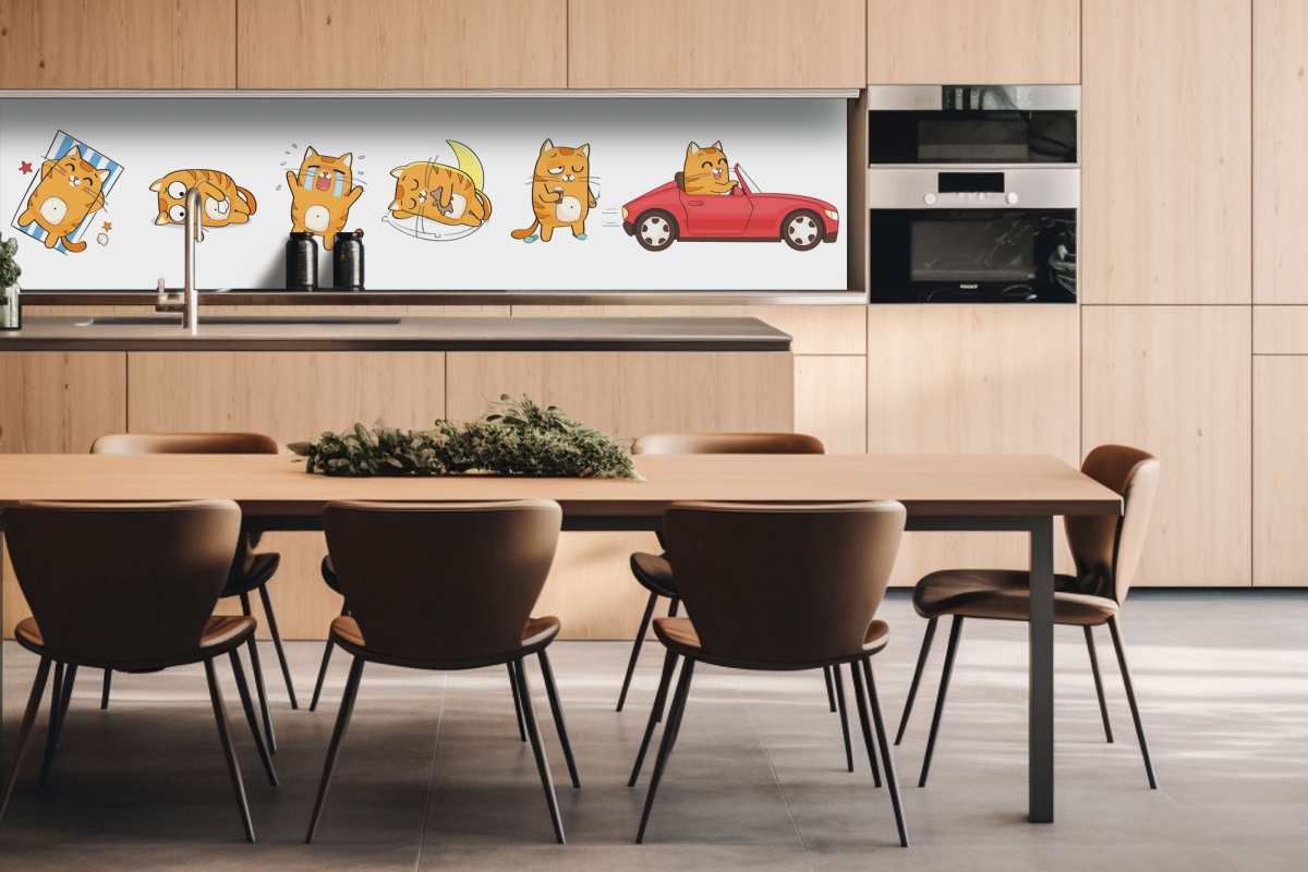 Dibond obkladová doska za kuchynskú linku Mačacie emócie - 260 x 60 cm