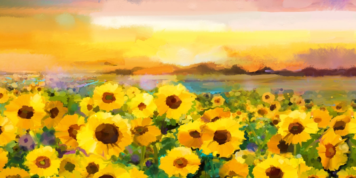 Dibond obkladová doska za kuchynskú linku Maľba slnečníc - 80 x 40 cm