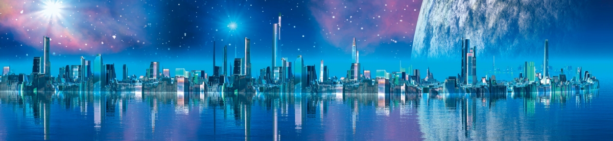 Dibond obkladová doska za kuchynskú linku Mesto budúcnosti - 260 x 60 cm
