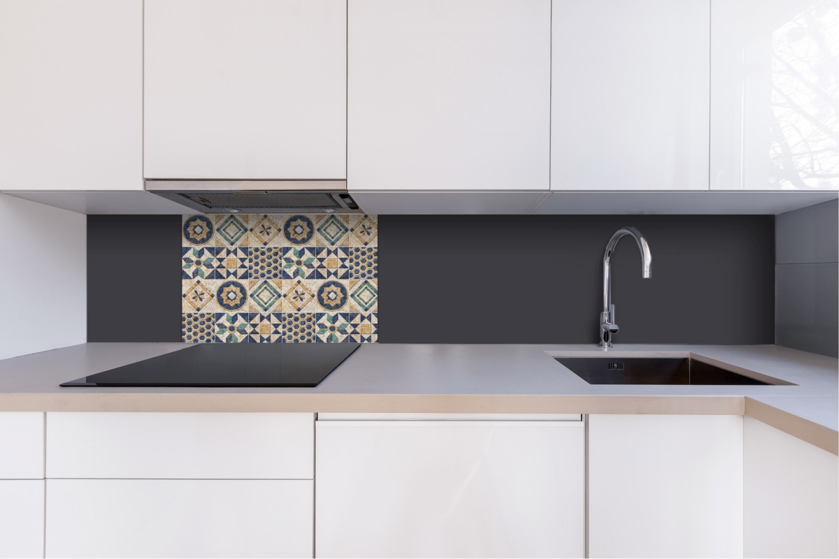 Dibond obkladová deska za kuchyňskou linku Modré kachličky - 60 x 40 cm cm