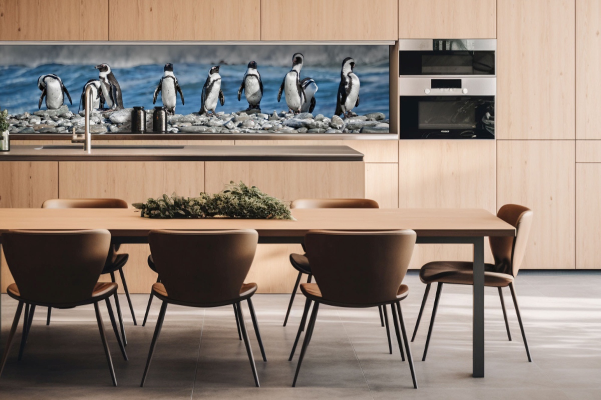 Dibond obkladová doska za kuchynskú linku Tučniaky - 260 x 60 cm