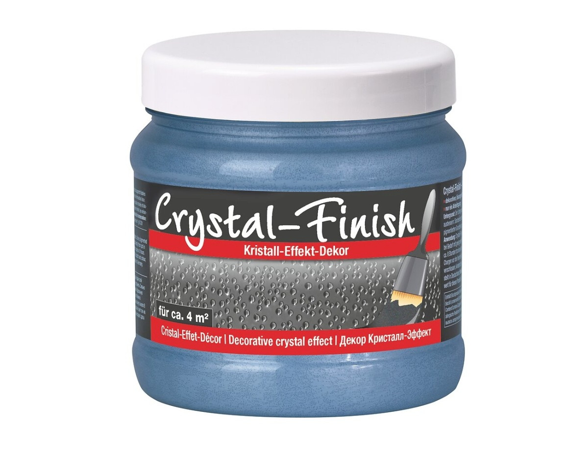 Crystal-Finish je vysoko kvalitný efektný náter na akrylátovej báze s obsahom pravých čiastočiek skla. Vhodné na nátery stien a stropov, tapiet, farebných náterov, muriva, omietok, polystyrénu a takmer všetkých ostatných povrchov v interiéroch.