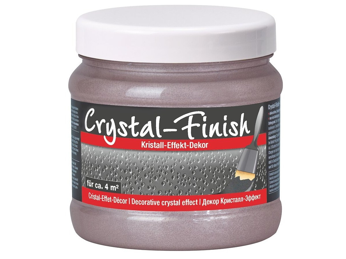 Crystal-Finish je vysoko kvalitný efektný náter na akrylátovej báze s obsahom pravých čiastočiek skla. Vhodné na nátery stien a stropov, tapiet, farebných náterov, muriva, omietok, polystyrénu a takmer všetkých ostatných povrchov v interiéroch.