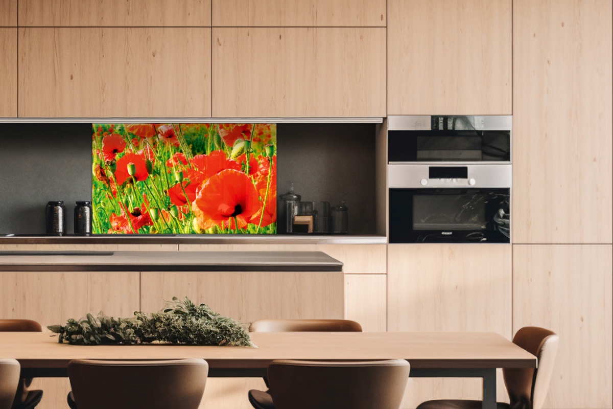 Plexisklo za kuchyňskou linku Červené vlčí máky - 100 x 60 cm