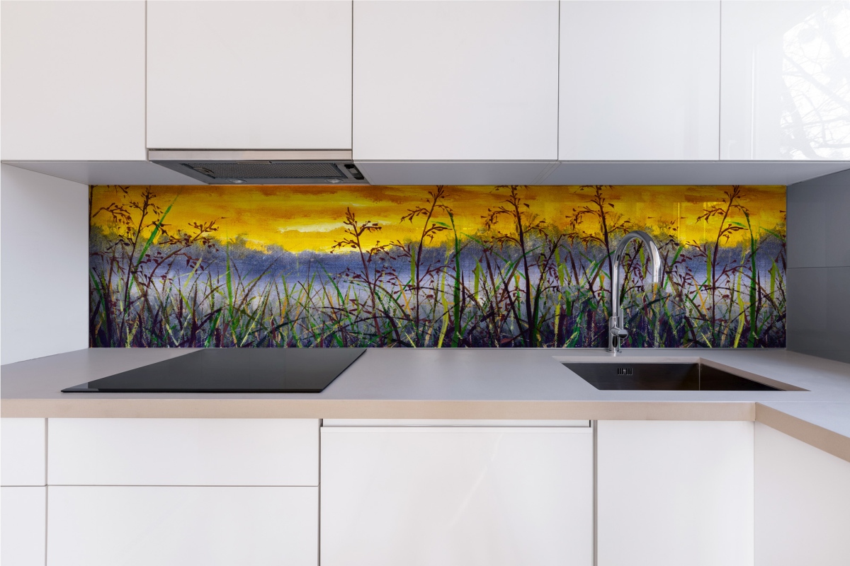 Plexisklo za kuchyňskou linku Denimová malba luční trávy - 240 x 60 cm