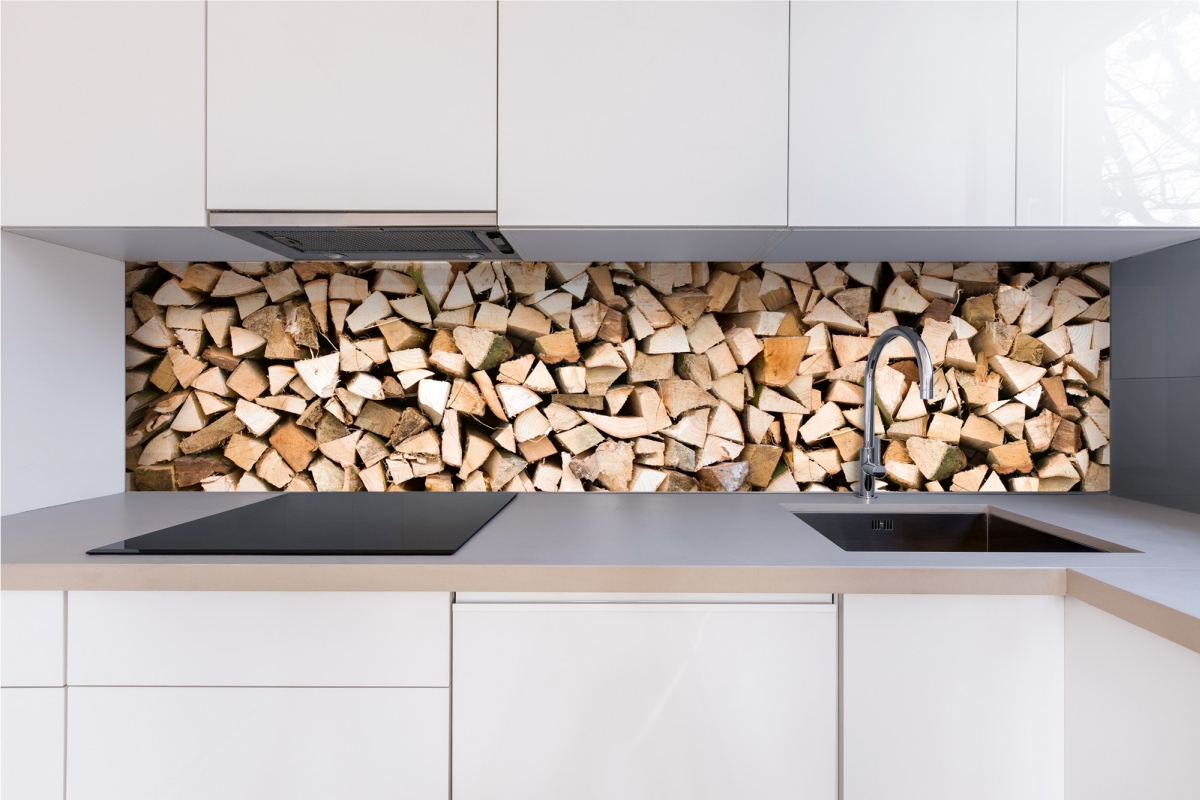 Plexisklo za kuchyňskou linku Dřevěná polena - 240 x 60 cm