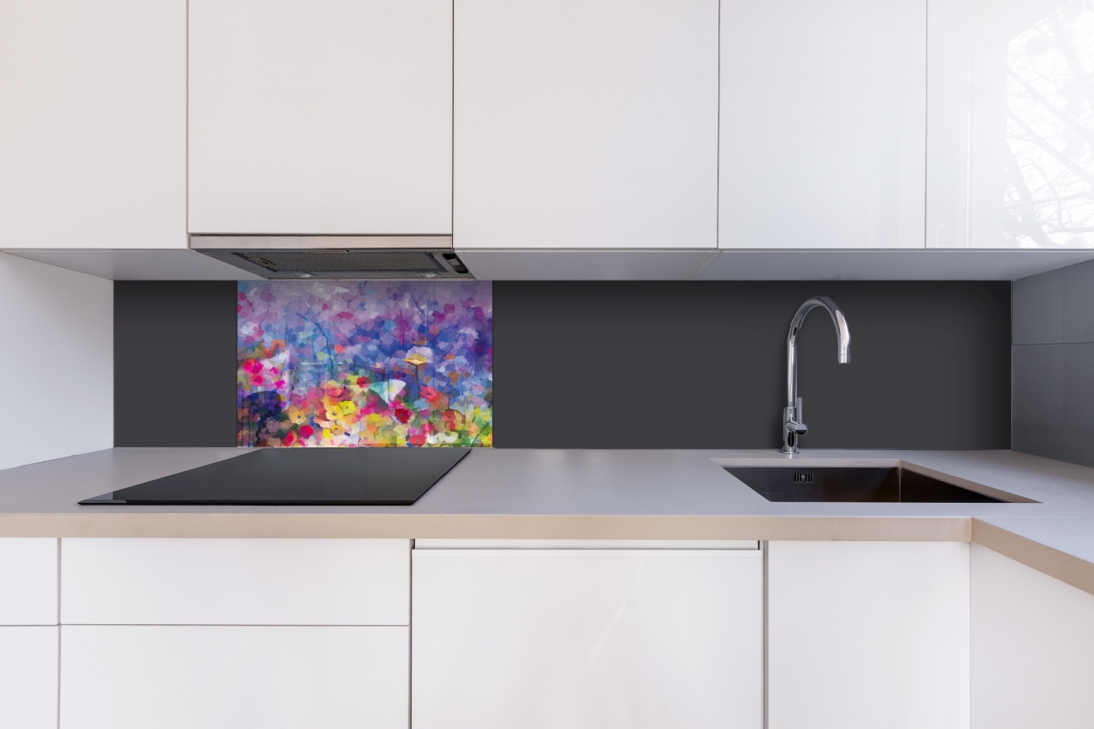 Plexisklo za kuchynskú linku Farebná kvetinová maľba - 60 x 40 cm