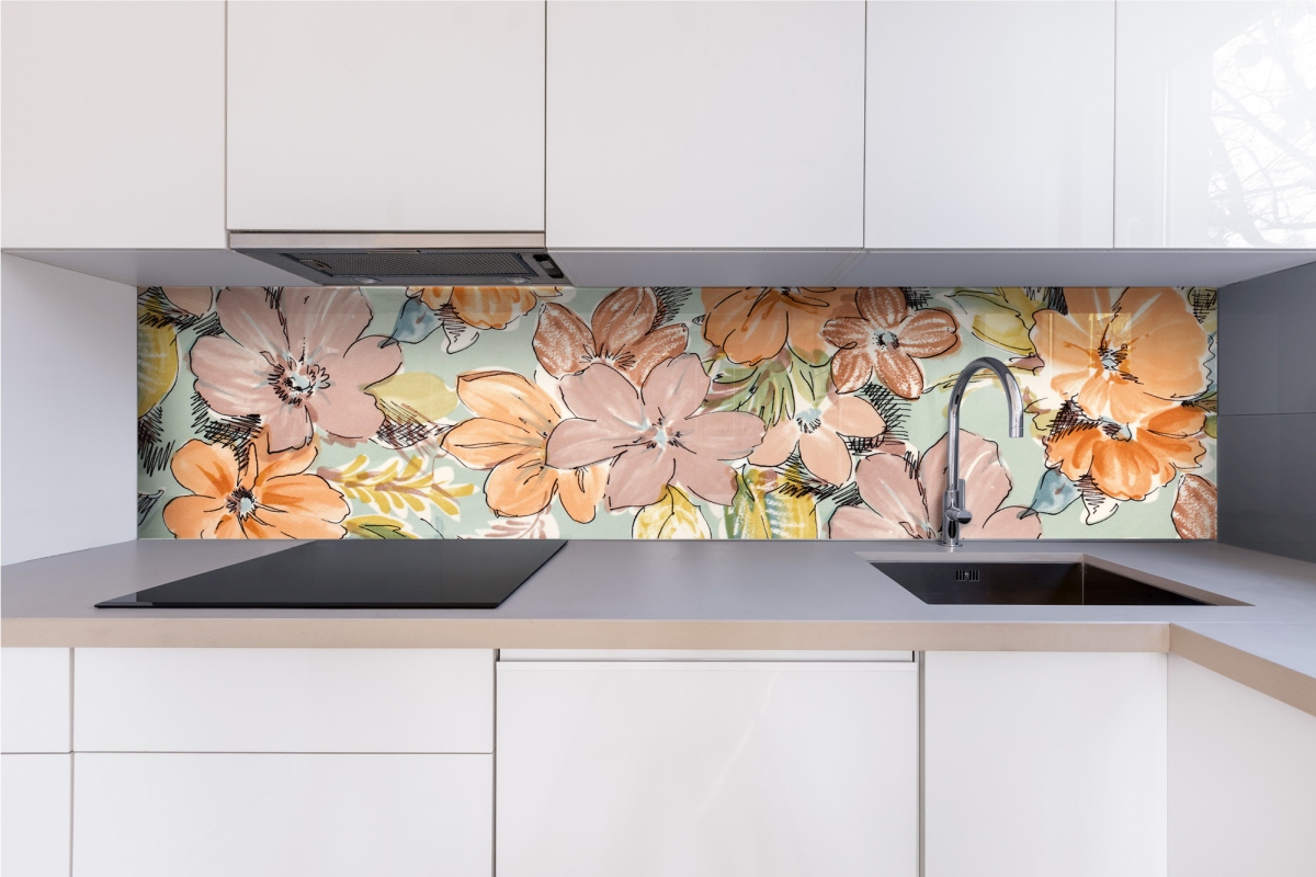 Plexisklo za kuchyňskou linku Barevný květinový vzor - 240 x 60 cm