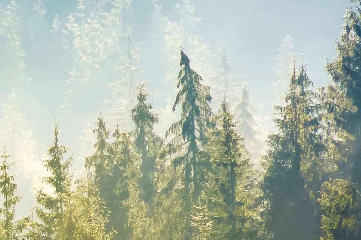 Plexisklo za kuchynskú linku Hmla nad lesom - 60 x 40 cm