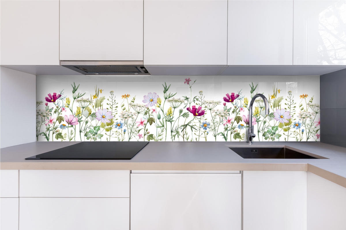 Plexisklo za kuchyňskou linku Květinový vzor - 240 x 60 cm
