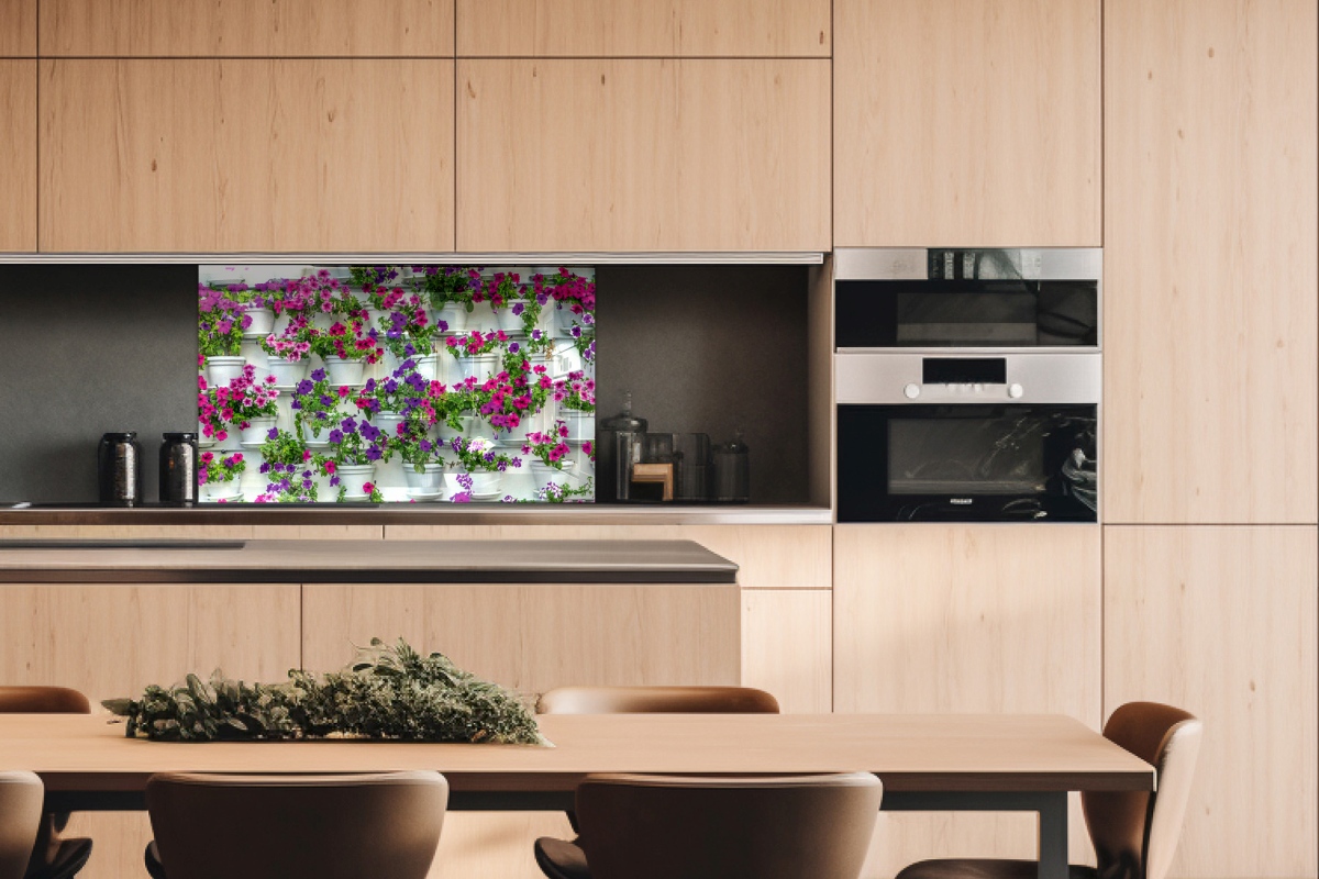 Plexisklo za kuchyňskou linku Květiny v truhlících - 100 x 60 cm