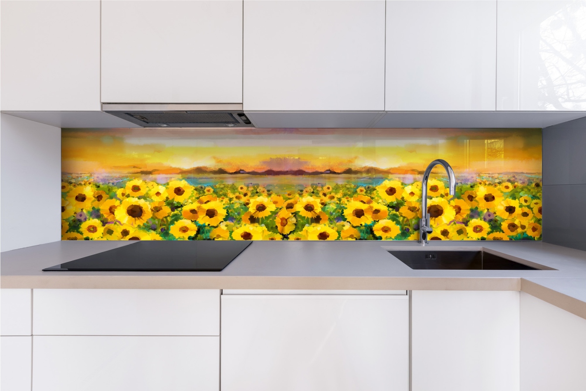 Plexisklo za kuchyňskou linku Malba slunečnic - 240 x 60 cm