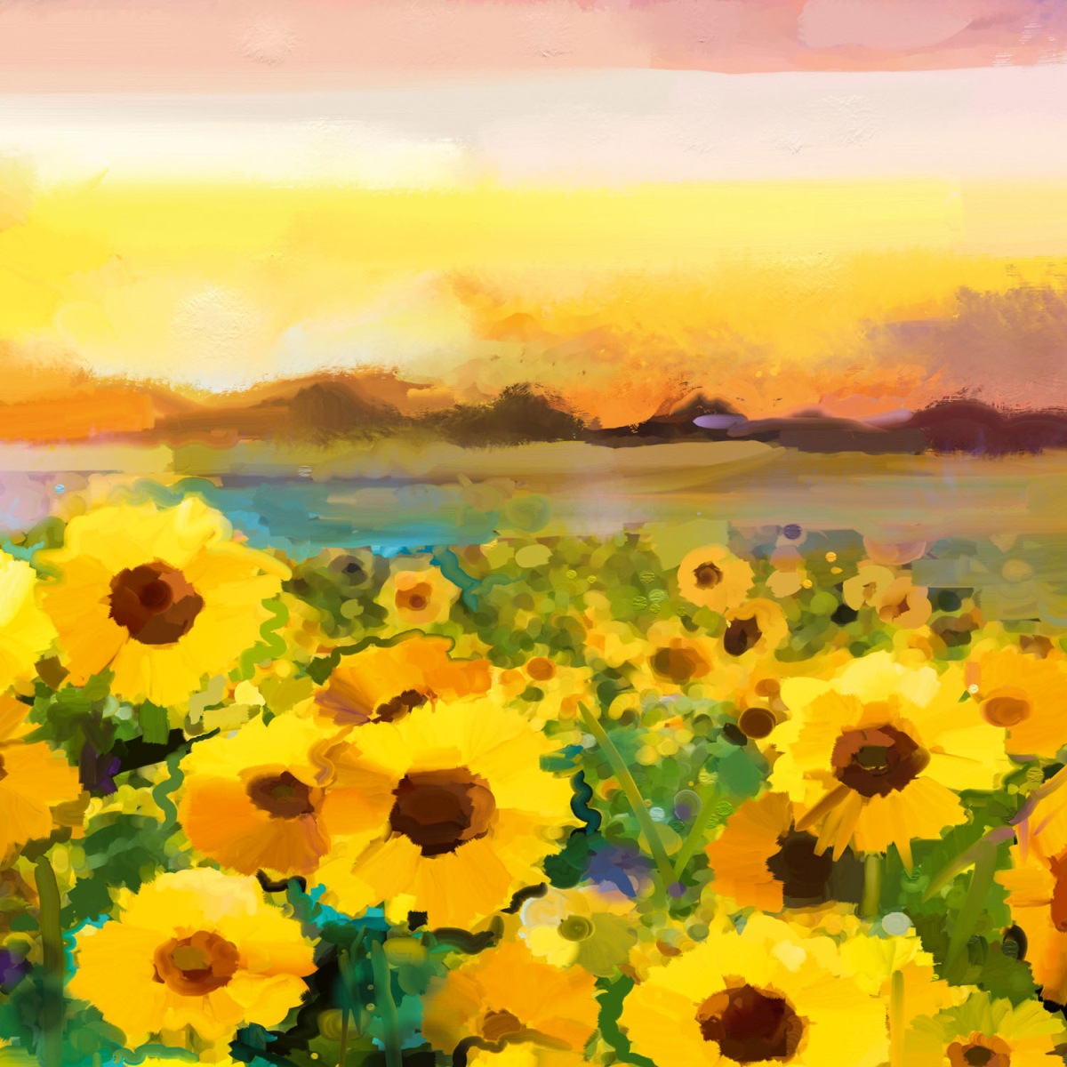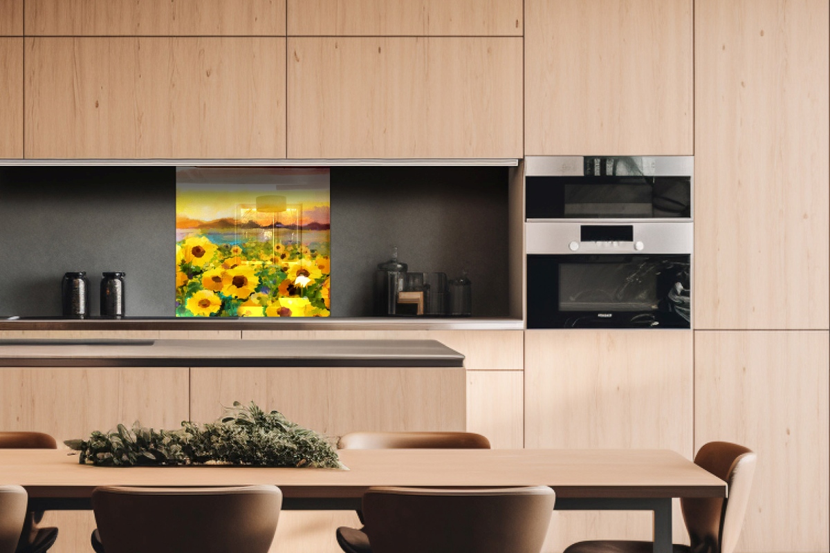 Plexisklo za kuchynskú linku Maľba slnečníc - 60 x 60 cm