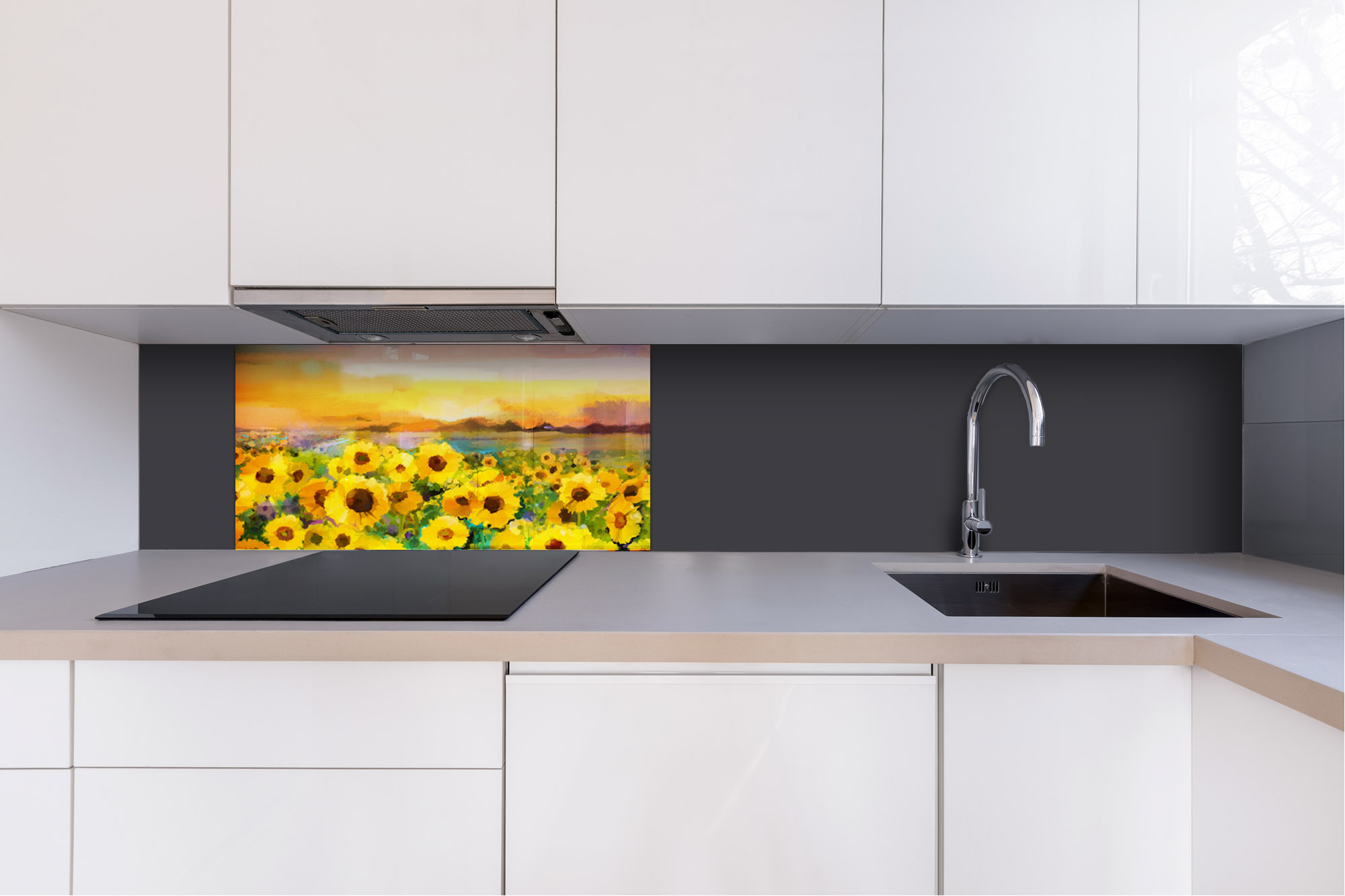 Plexisklo za kuchynskú linku Maľba slnečníc - 80 x 40 cm