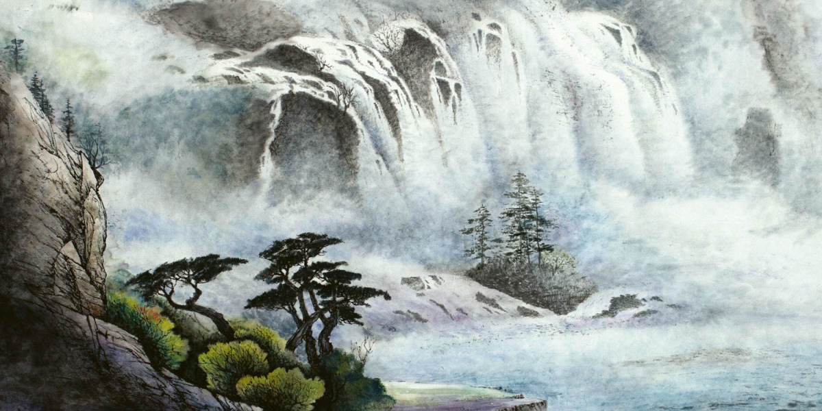 Plexisklo za kuchynskú linku Maľba vodopádu - 80 x 40 cm