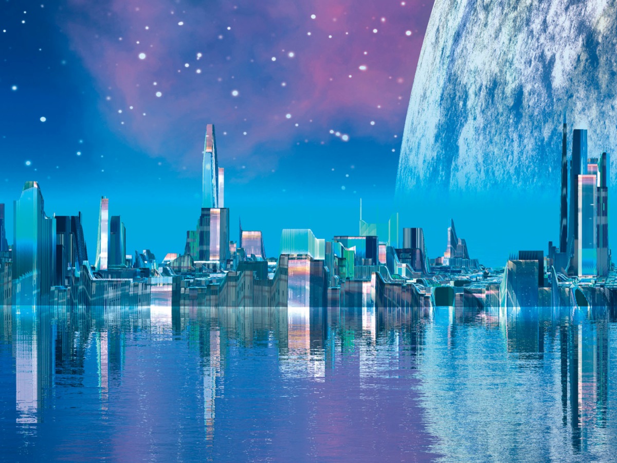 Plexisklo za kuchyňskou linku Město budoucnosti - 80 x 60 cm
