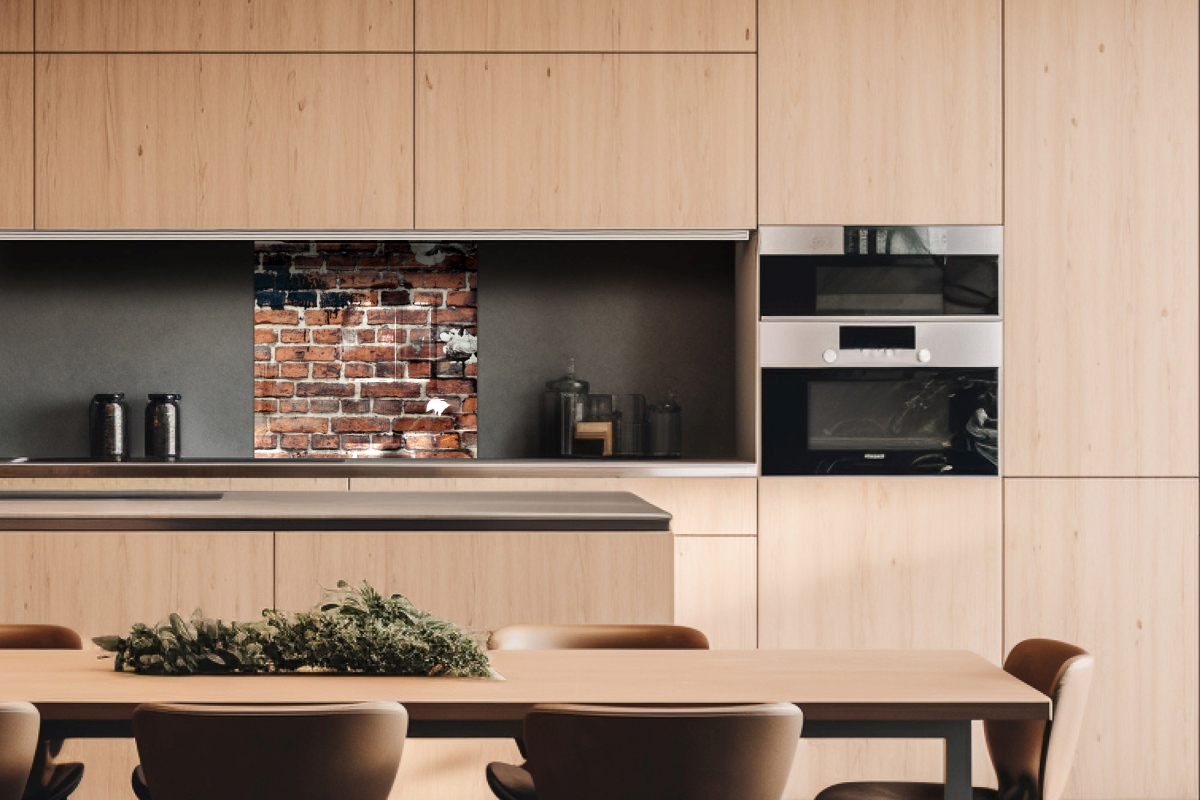 Plexisklo za kuchynskú linku Oprýskaný tehlový múr - 60 x 60 cm